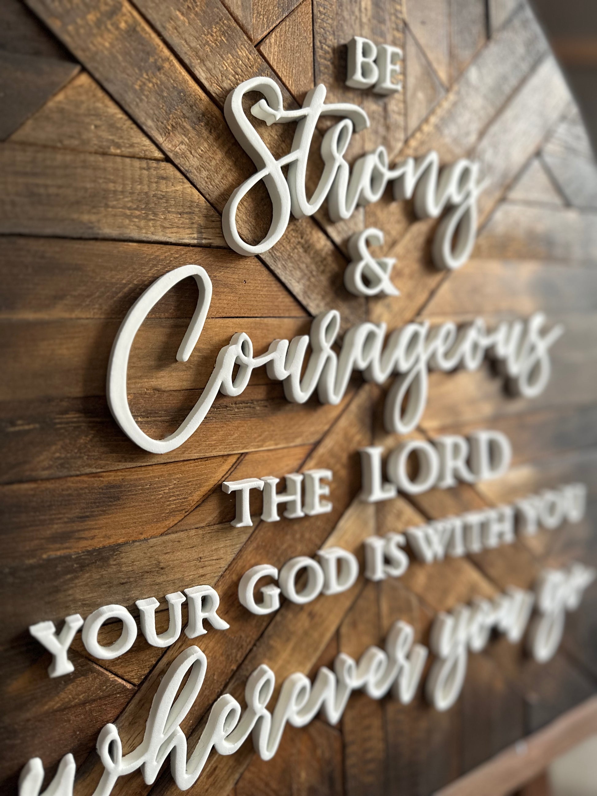 Be Strong and Courageous, Joshua 1:9, Wood Mosaic Christian Art